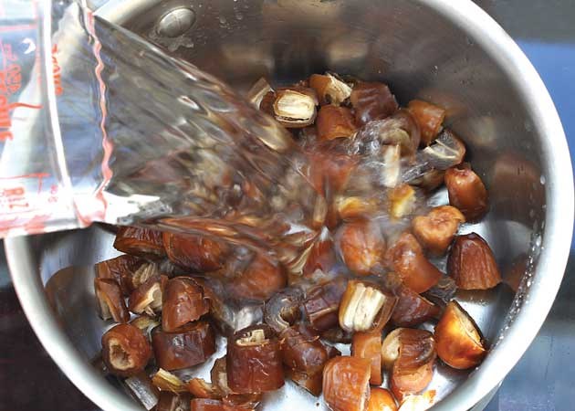 Cuire 10 min les dattes dans 2 v. d'eau, avec 1 p. de sel.