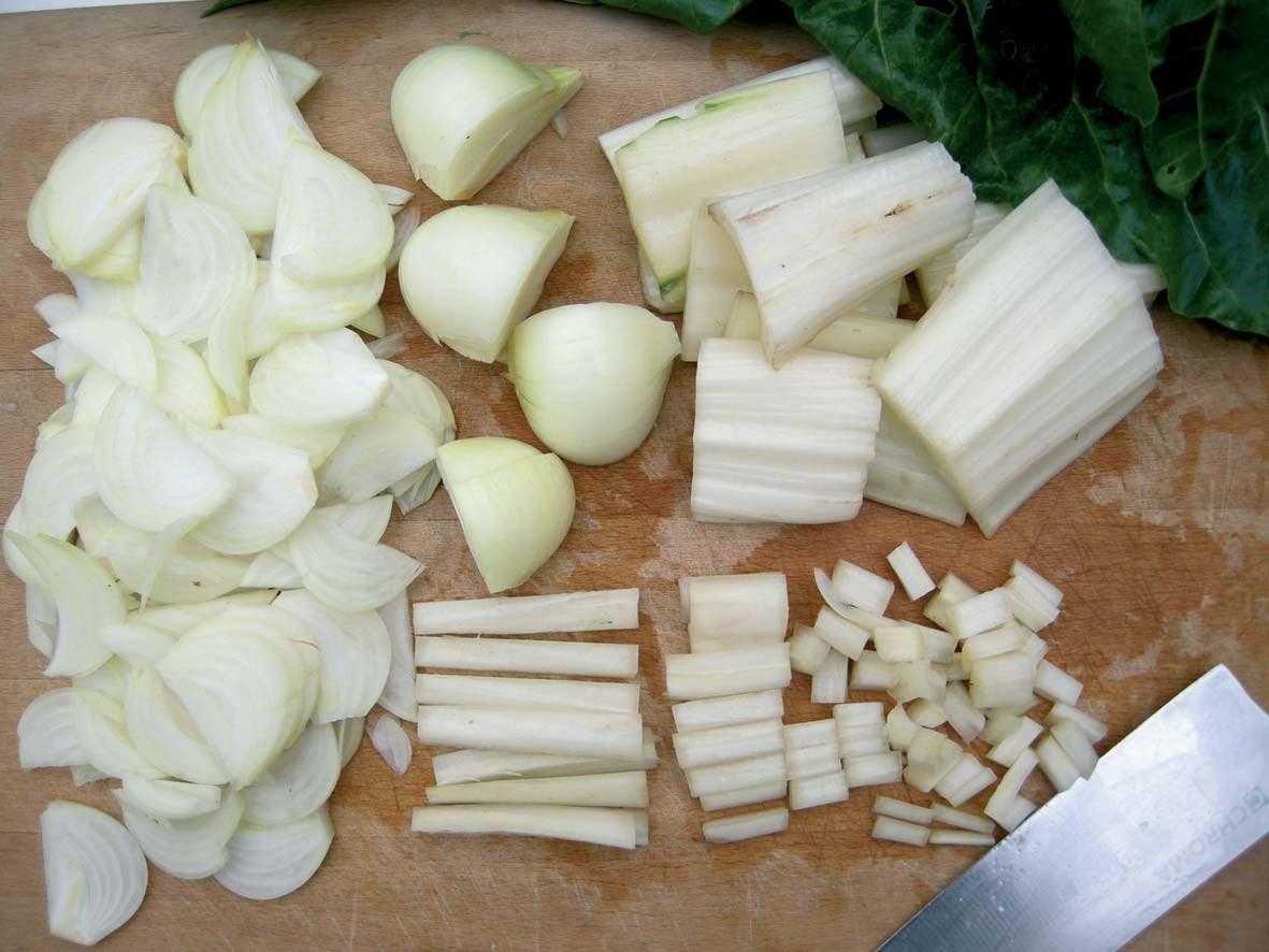 Ingrédients pour 4 à 5 pers.3 à 4 oignons6 feuilles de bettes (ou poirée)algue WakaméUstensiles conseillés :1 marmite inox 20 cm1 faitout 24 cm