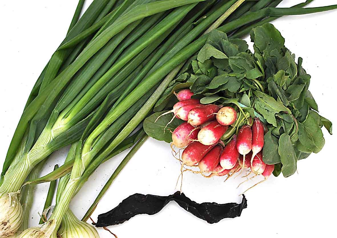 Ingrédients pour 4 à 5 pers.1 botte d'oignons blancs1 botte de radis1 algue wakaméUstensile conseillé 1 marmite inox 20 cm