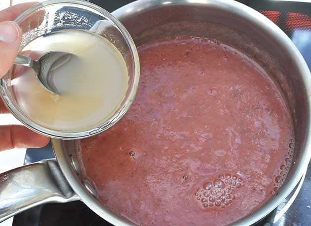 Délayer l'agar-agar avec 1 peu d'eau froide. Verser dans le coulis. Porter à nouveau à ébullition.