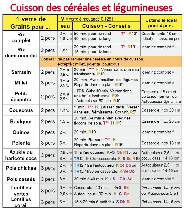 Toutes les informations en une seule page pour cuire vos céréales et vos légumineuses