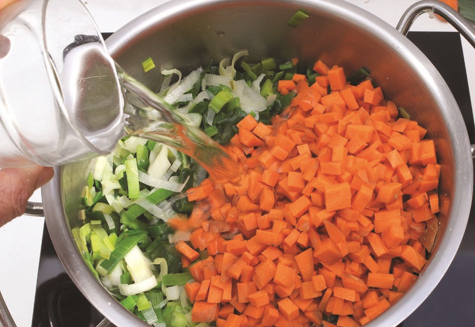 Faîtes en sorte d'avoir des restes pour démarrer un potage pour le prochain repas (à associer avec un reste de légumineuse ex: lentilles corail) ou pour confectionner une tarte aux légumes par ex.Garniture pour tarte : délayer 2 c. à c. d'arrow-root ou de kouzou (épaississants) dans un peu d'eau froide. Verser sur les légumes en fin de cuisson.